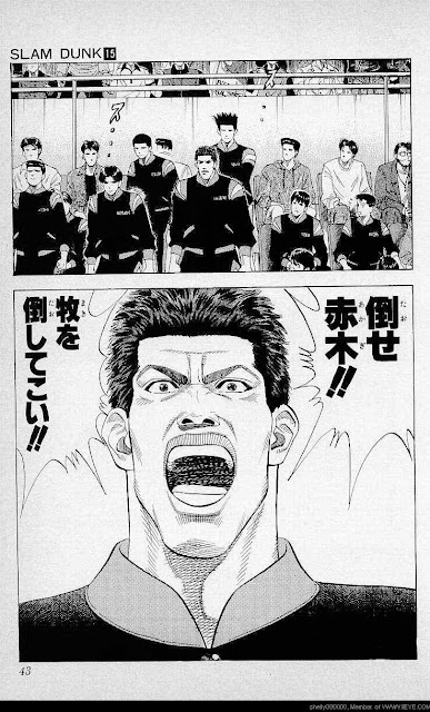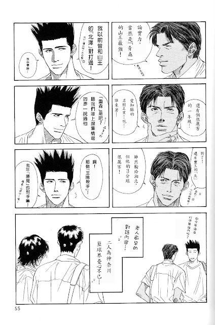 如此一來,呼應湘海之戰時,藤真不願看海南落敗(那跟看同樣打贏自己的湘北再敗,是不同的)的心情,已經連成一氣——牧必須一直是在他身前的王者。所以,海南跟湘北、海南跟陵南、陵南跟湘北……藤真的漸進式出現,以心態論,實在有軌可循了。